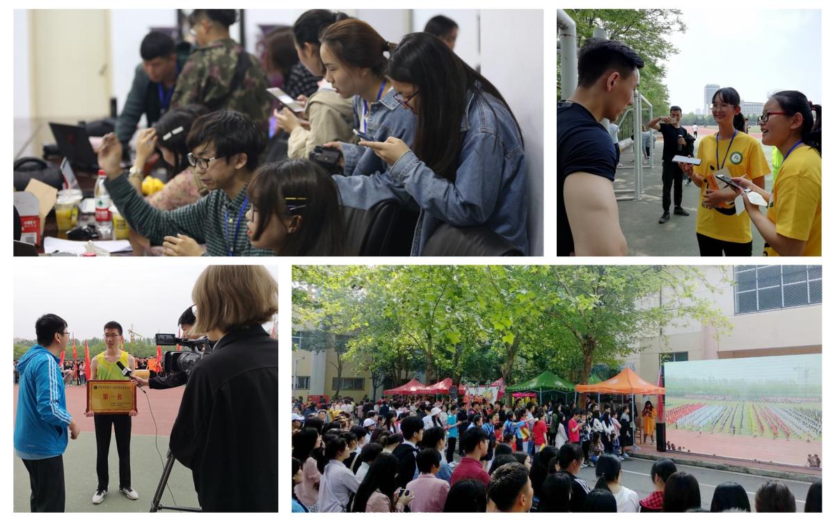 许昌学院官网、网络电视台、许昌学院报、校园广播、新媒体的近200名师生投入到运动会的宣传报道中,为广大师生呈现校运会全景互动报道。大学生通讯社、校报记者团奔波在赛场各个角落,用镜头和文字捕捉每一个有意义的瞬间,网络电视台出动8台摄像机全程取景编播,制作“精彩瞬间”“冠军榜”等多段视频全程直播和拍摄精彩赛事,官方微博“许昌学院运动会”话题的阅读量达到 36万,官方微信、QQ校园号推文阅读量累计4万余次,校园广播制作12档运动会专题节目,每天累计播出6个小时......一张张照片、一行行文字、一段段视频,记录和串联起运动会的精彩。