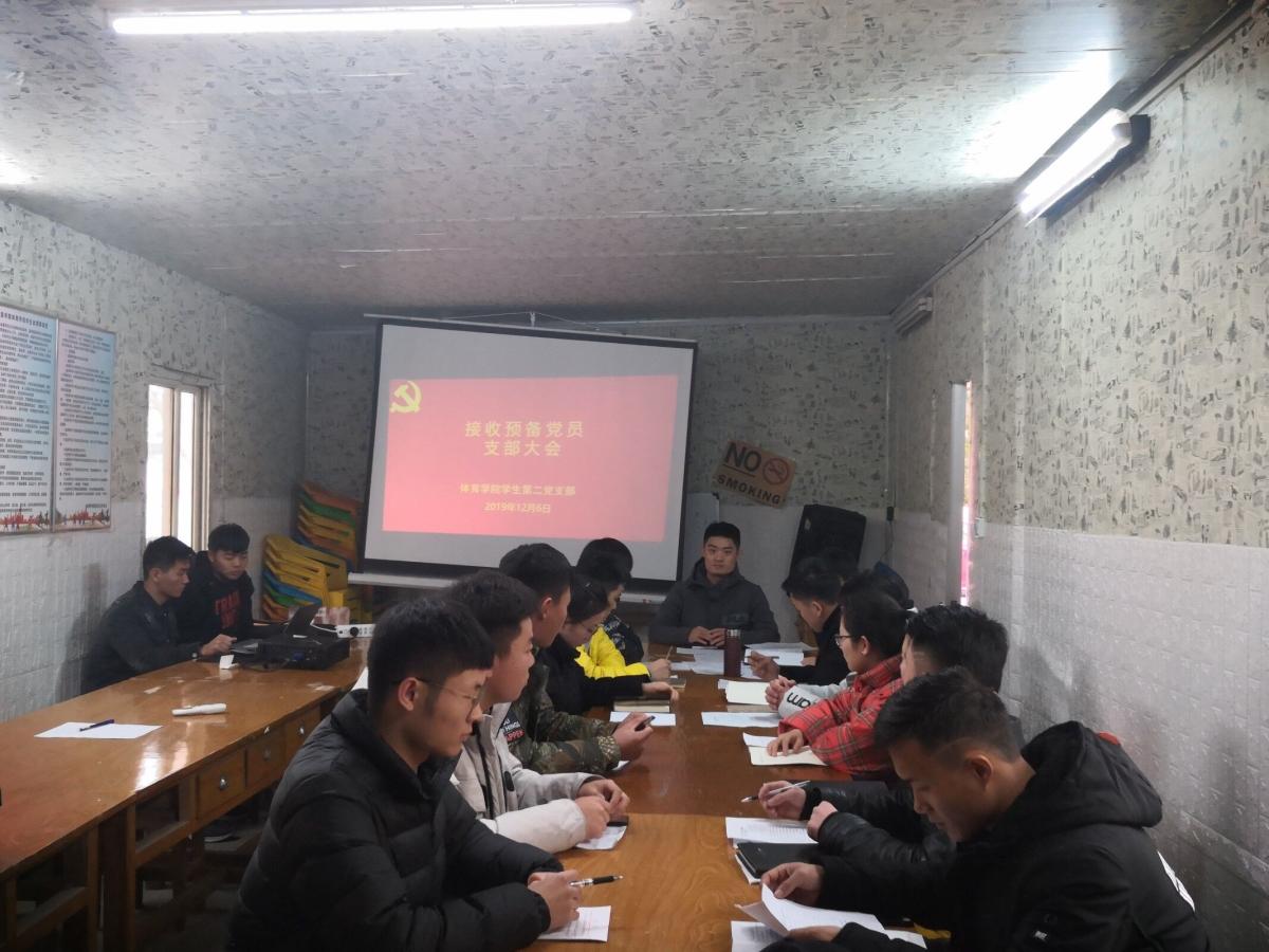 首先由张亚辉同志宣读本次发展对象名单,各发展对象就本人对党的认识、入党动机、本人履历、家庭和主要社会关系以及宣读入党志愿书,并表达了个人在生活、学习、工作、思想态度等方面想要加入党组织的决心和愿望。入党介绍人及其党员对发展对象在校情况发表意见。大会通过讨论及无记名投票的形式确定接收徐冬冬、张尊、李蓓、文宇广、王汶龙、杨博文6名发展对象为预备党员。