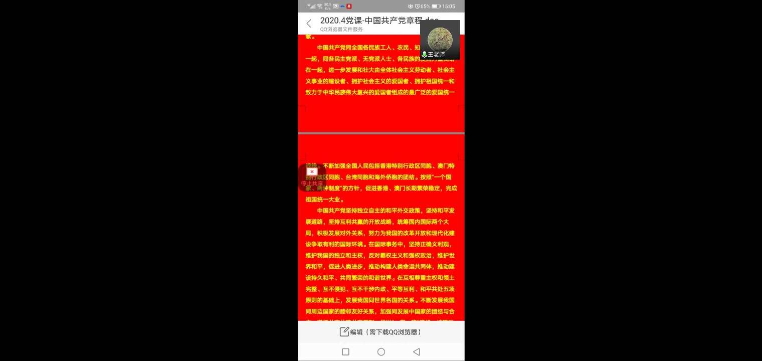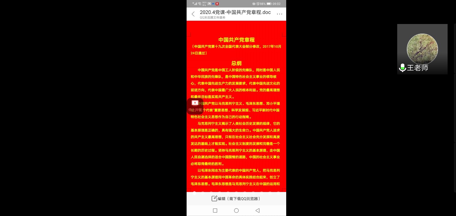 课上,王军平老师以“党史”为主题,介绍了党的发展历程,介绍了党面临苦难,历经沧桑而不倒,饱经风霜而不衰。党的发展历程是艰难的,但是也是最激动人心的。在中国共产党的领导下,党会不断与时俱进,不断发展。我们从中国共产党成立以来党章的修改历程能清楚地看到,中国共产党紧跟时代发展的步伐,不断总结新的经验,并将实践检验证明正确的结论写进党章,通过不断修改党章,调整党的奋斗目标,在思想上、理论上与时代同进步,始终保持与时俱进的精神状态和马克思主义政党的理论品质。