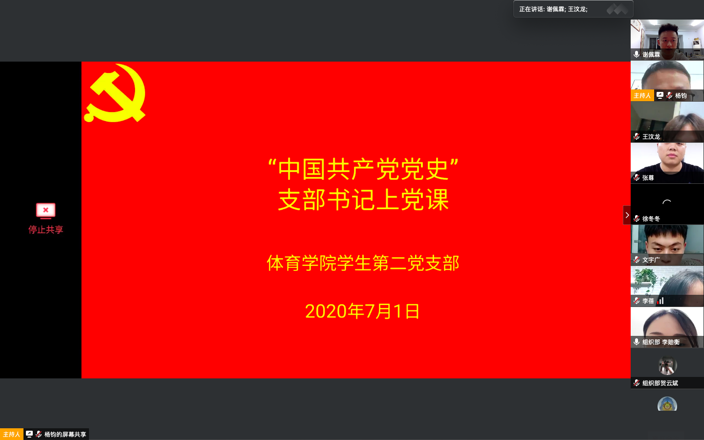 2020年7月1日下午,我院学生第二党支部在线上召开“中国共产党党史”支部书记上党课的党日活动。活动由谢佩霖老师主持,第二党支部全体党员参加。