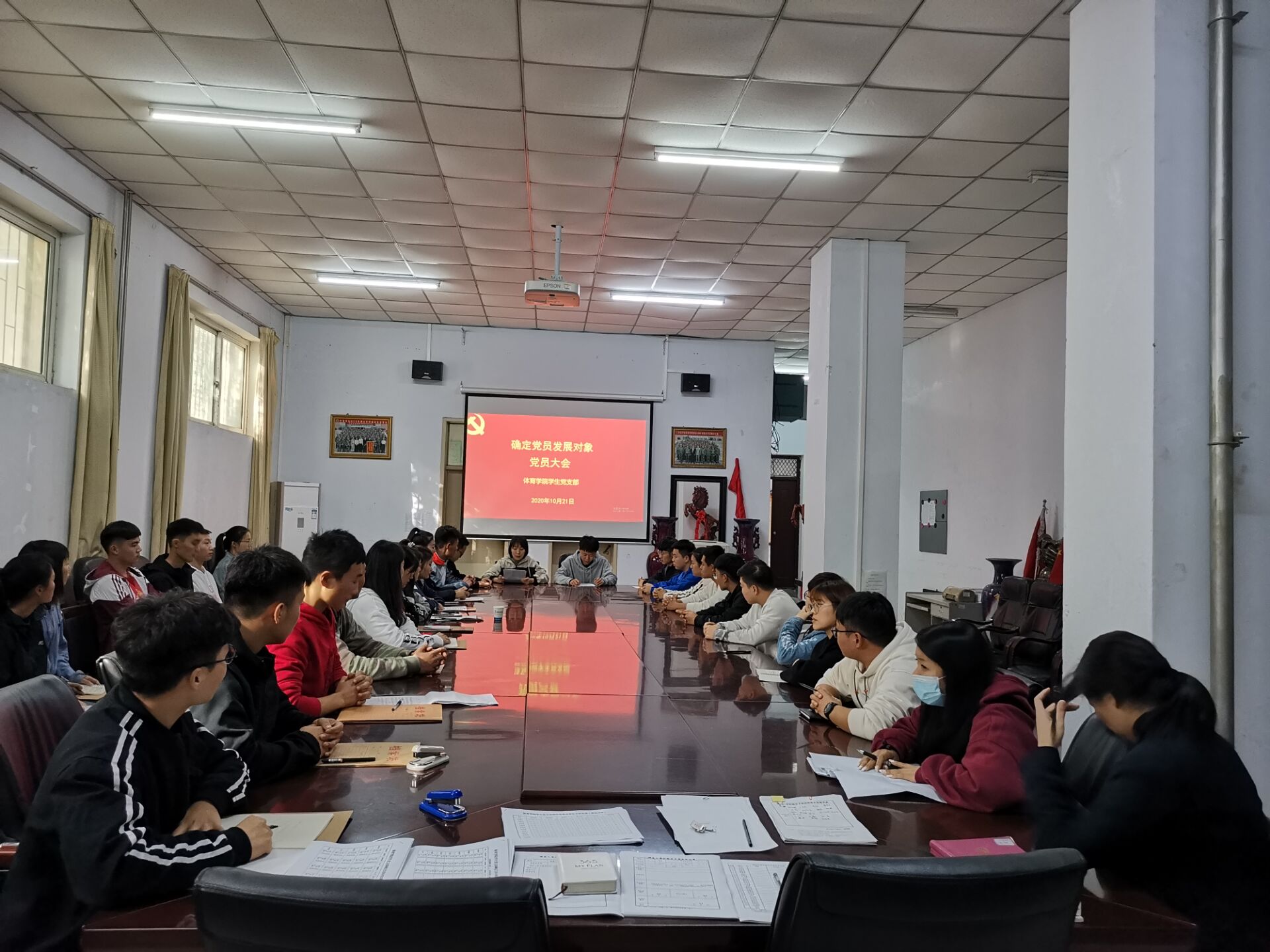 2020年10月21日下午,体育学院学生党支部在体育学院办公室召开确定发展对象党员大会。会议由学生党支部书记邱靖逸主持,学生党支部全体学生党员参加了本次会议。