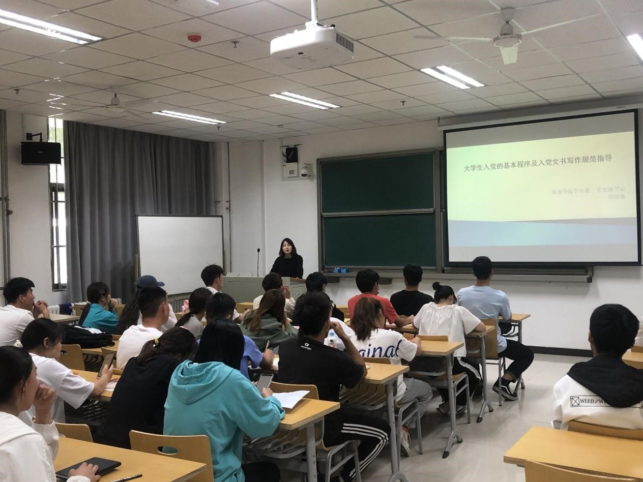 5月7日下午,我院学生党支部书记邱靖逸同志在E-102为我院第65期入党积极分子讲授了一节以“讲解入党条件、入党程序及党章学习”为主题的党课。