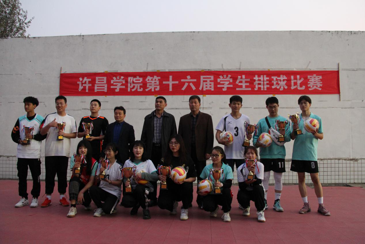 10月29日,许昌学院第十六届学生排球赛于校本部南排球场落下帷幕,本次赛事历经三个阶段9天时间,共计80场比赛,全校15个学院近500名学生参赛。最终成绩为:男子组前八名依次是国际教育学院、电气与机械工程学院、信息工程学院、文史与传媒学院、土木工程学院、化学化工学院、法政学院、商学院;女子组前八名依次是外国语学院、文史与传媒学院、信息工程学院、土木工程学院、电气与机械工程学院、国际教育学院、教育学院、化学化工学院。