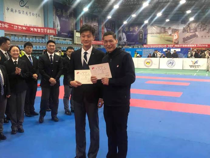 2020年11月27日至12月1日,河南省“体彩杯”空手道锦标赛在濮阳成功举办,我院2018级学生杨欣宇、韩雨珂,被河南省空手道协会抽调参与本次比赛的裁判工作。在为期五天的执裁过程中,杨欣宇、韩雨珂同学以良好的裁判形象、扎实的功底、谦虚勤奋的工作学习态度得到了组委会领导的一致好评。杨欣宇同学被授予“优秀裁判员”荣誉证书。