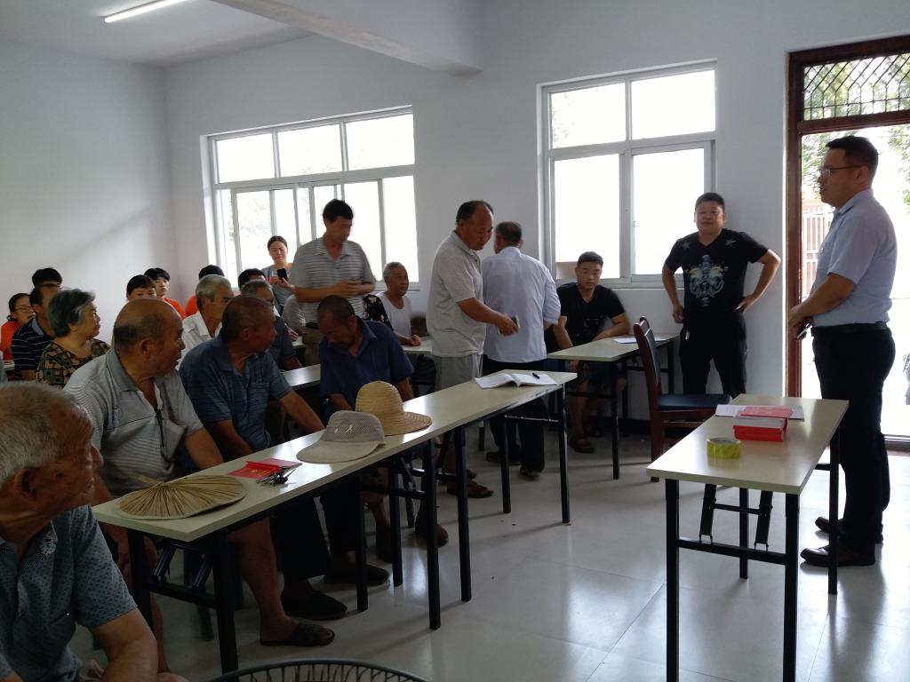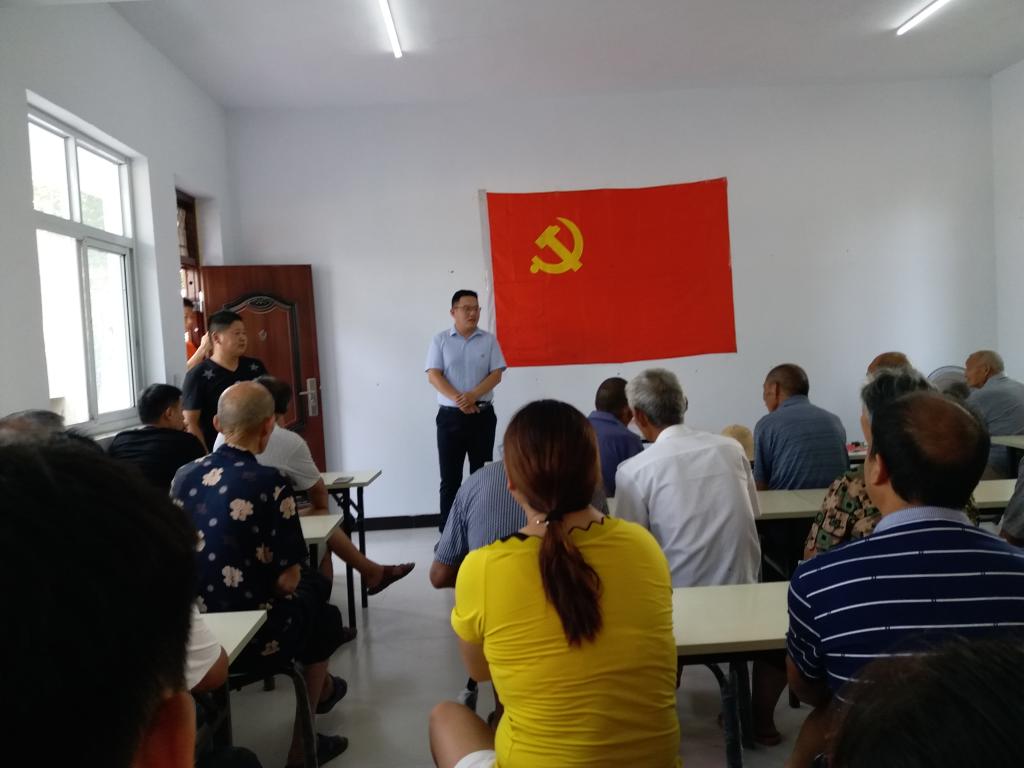 下午4点半,蒋李集镇的党员陆陆续续地来到会场,许昌学院体育学院赴建安区蒋李集镇辛庄村脱贫攻坚志愿服务队安排参会党员入座,我们负责给党员们分发《建安区农村(社区)党员积分管理手册》。该会由蒋李集镇辛庄村支部书记何喜才主持,建安区共青团第一书记郭威宣讲了关于“实施精准扶贫,共建全面小康”的内容。最后,郭书记带领所有在场党员以及我们所有团员郑重宣誓:“我志愿加入中国共产党,拥护党的纲领……”。义正言辞的誓言回荡在会场,此刻的我们甚是激动,因为我们是第一次参加党会并宣读入党誓词。
