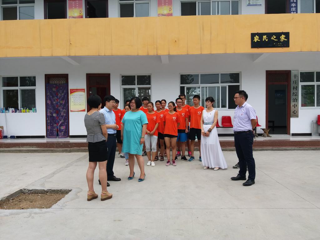 为了进一步落实蒋李集镇辛庄村脱贫计划的实施,对学生社会实践活动的了解,保证学生社会实践活动的全面深入,有效的展开。7月5日下午四点在带队老师、辅导员和队长的带领下,共青团许昌市委书记陈涛和建安区区长在酷暑高温的天气下,莅临建安区蒋李集镇辛庄村指导慰问许昌学院体育学院大学生暑期社会实践脱贫攻坚志愿服务队,先进行工作调查还给我们送来了食物以及水。
