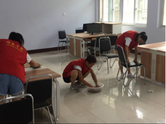 下午,为了给接下来的机器人夏令营活动提供更安全更整洁的环境,我们的志愿们对培训点进行了集中的打扫和整理,秉着可以为小朋友提供更好的学习环境的心态,我们的志愿者每个人都非常的尽心尽力,也不觉得有什么苦什么累,反而乐在其中。