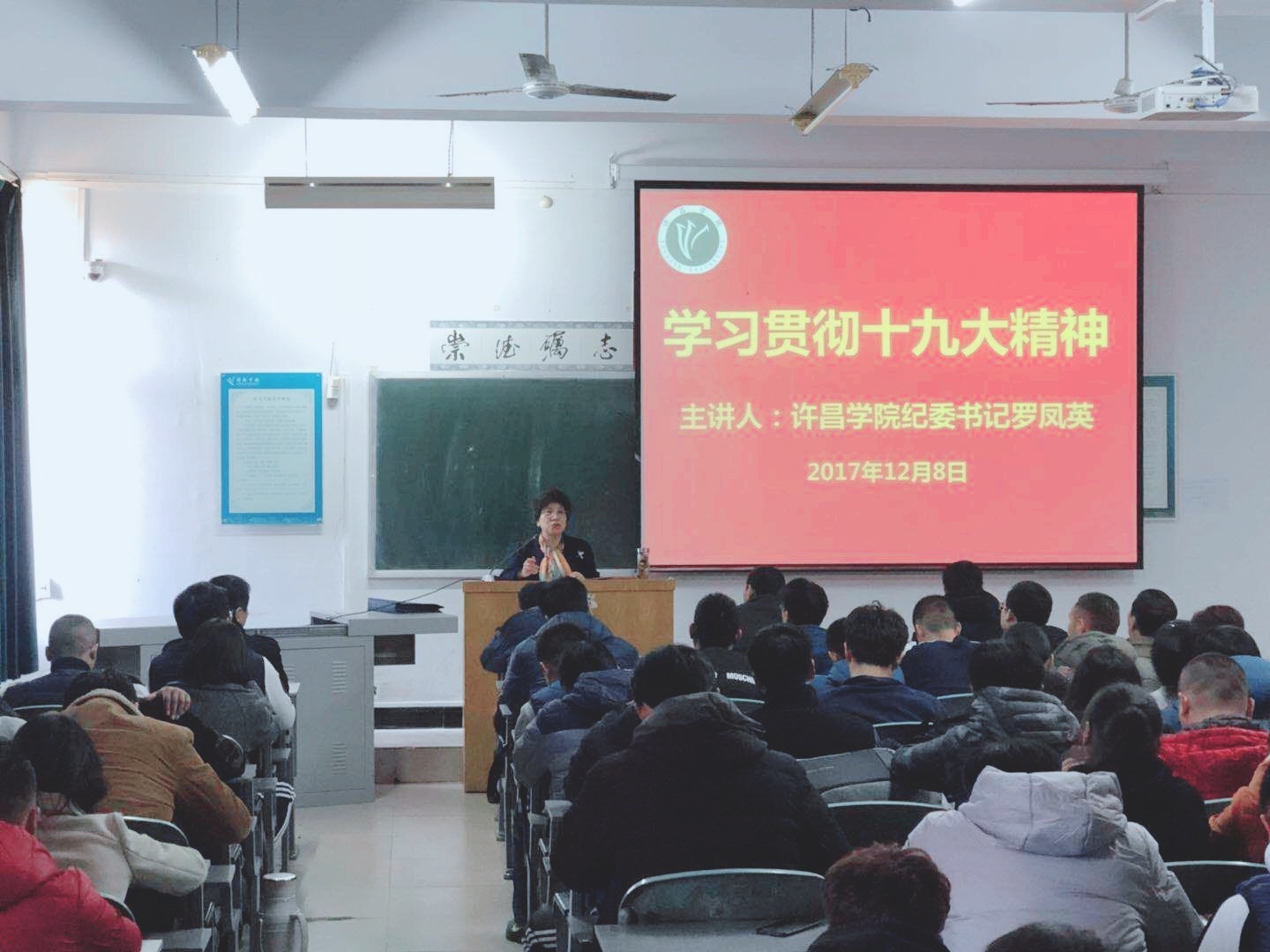 2017年12月8日下午,许昌学院纪委书记罗凤英在C-105教室为联点单位--体育学院200余名师生上了一堂生动的党课。