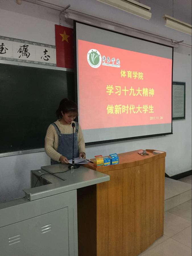 为加深学生对党的十九大精神的理解和把握,2017年11月24日下午,我院16级、17级全体同学开展了“学习十九大精神,做新时代大学生”为主题的学习活动,深入探讨党的十九大精神和内涵。本次主题学习活动由17级辅导员邱靖逸老师主持。