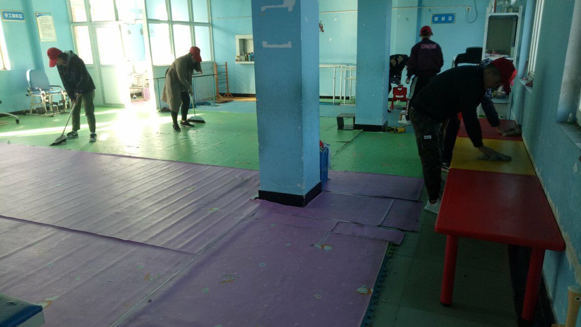 经过半个小时的车程,学生党员们到达目的地。在康复中心负责人的安排下,带队的支部委员将学生党员们分成两队开始打扫一楼和二楼的房间与走廊。为了给孩子们营造更好的生活环境,志愿者们用消毒水浸泡过的毛巾去擦拭房间内的桌子和娱乐玩具,虽然消毒水的味道很刺鼻,但志愿者们却毫无抱怨,依旧认真地完成清理工作。不知不觉中半个小时过去了,刚结束打扫工作的志愿者们满脸笑容的迎接着从睡梦中醒来的孩子们。