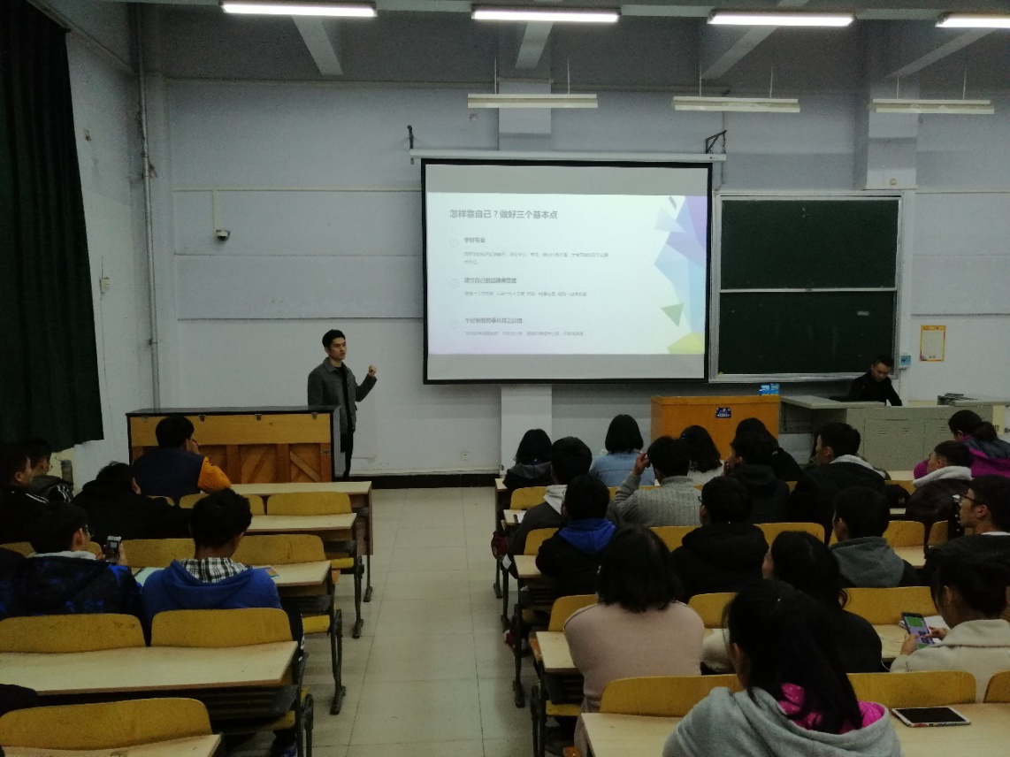 徐虹艳、王景才、靳乐三名在不同行业都取得一定成绩的优秀毕业生代表们为2018级全体学生上了一堂生动的心得交流课,师生互动频繁,课堂气氛热烈,让2018级新生们对自己未来的方向和信心进一步得到明确和加强。