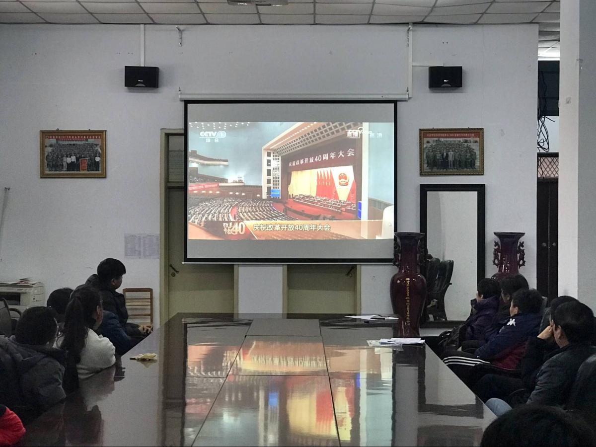 在集中观看庆祝改革开放40周年大会后,我院党总支书记李明生要求认真组织师生开展学习讨论,采取支部集中学习、自我学习等多种形式,深刻认识和把握大会报告的精神实质和丰富内涵,迅速把思想和行动统一到大会精神上来,兴起广泛学习宣传贯彻改革开放40周年大会精神的热潮。