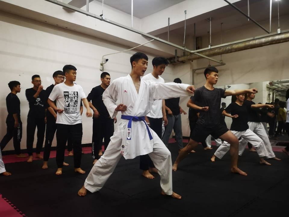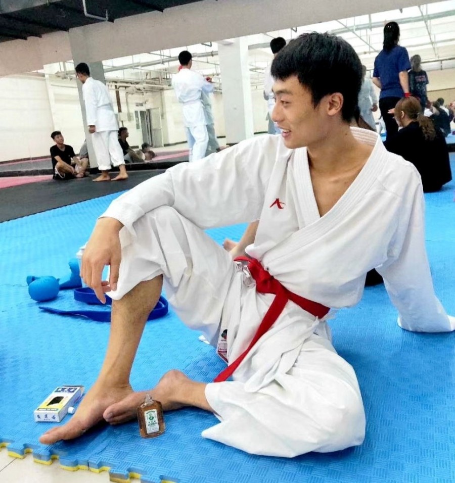 来到大学的第一年,方博康毫不犹豫地选择了跆拳道作为自己的选修课,也正是在这个课上,身高体长的他得到了叶梦淼老师的关注。2017年暑假,体育学院开设了空手道课并组队,叶老师从当时大二的同学中选拔了几位同学传授空手道技巧。