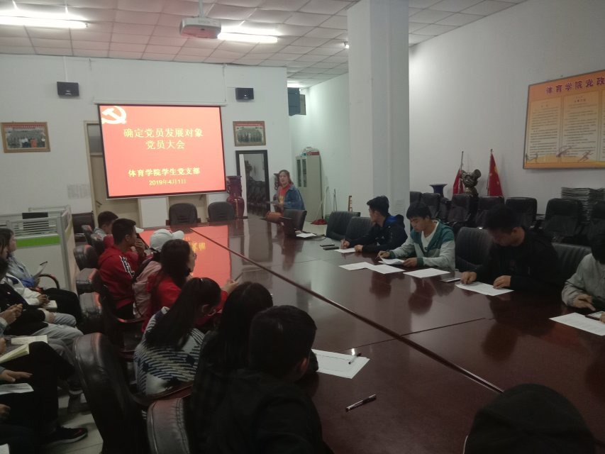 2019年4月1日18:00我院在体育学院党总支办公室召开了党支部发展对象推优大会。第二党支部书记张亚辉老师及全体学生党员参加此次会议。