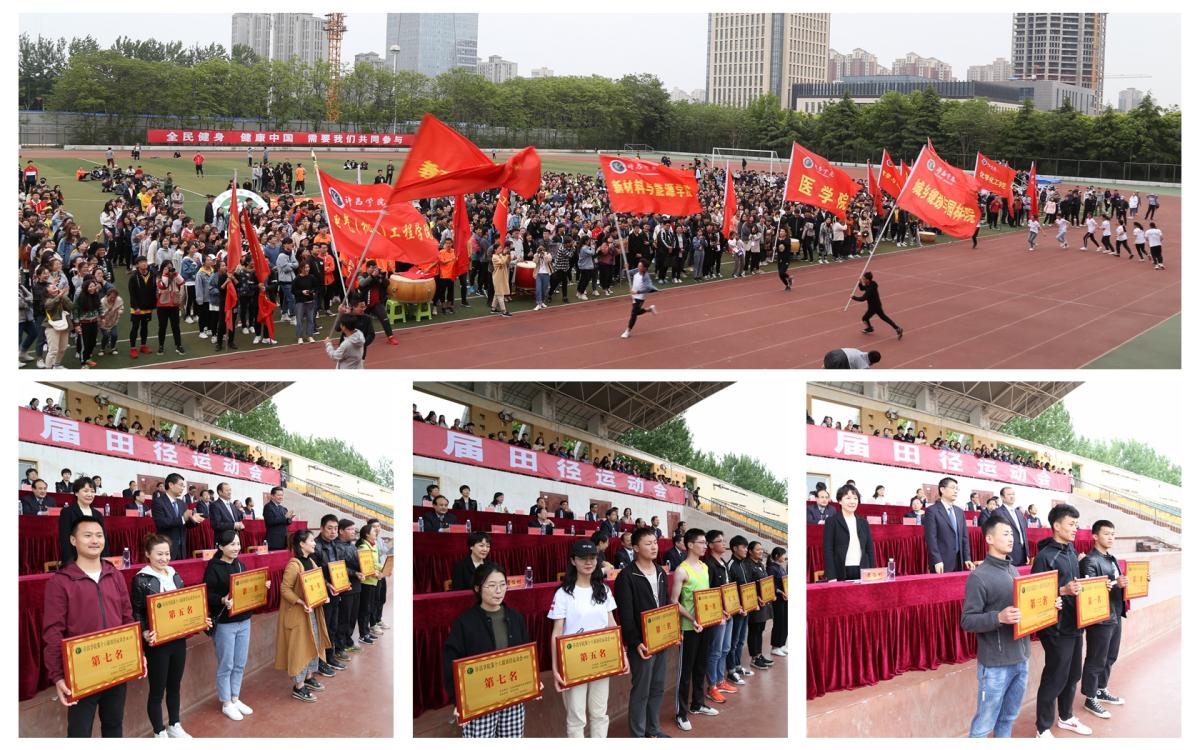 许昌学院官网、网络电视台、许昌学院报、校园广播、新媒体的近200名师生投入到运动会的宣传报道中,为广大师生呈现校运会全景互动报道。大学生通讯社、校报记者团奔波在赛场各个角落,用镜头和文字捕捉每一个有意义的瞬间,网络电视台出动8台摄像机全程取景编播,制作“精彩瞬间”“冠军榜”等多段视频全程直播和拍摄精彩赛事,官方微博“许昌学院运动会”话题的阅读量达到 36万,官方微信、QQ校园号推文阅读量累计4万余次,校园广播制作12档运动会专题节目,每天累计播出6个小时......一张张照片、一行行文字、一段段视频,记录和串联起运动会的精彩。