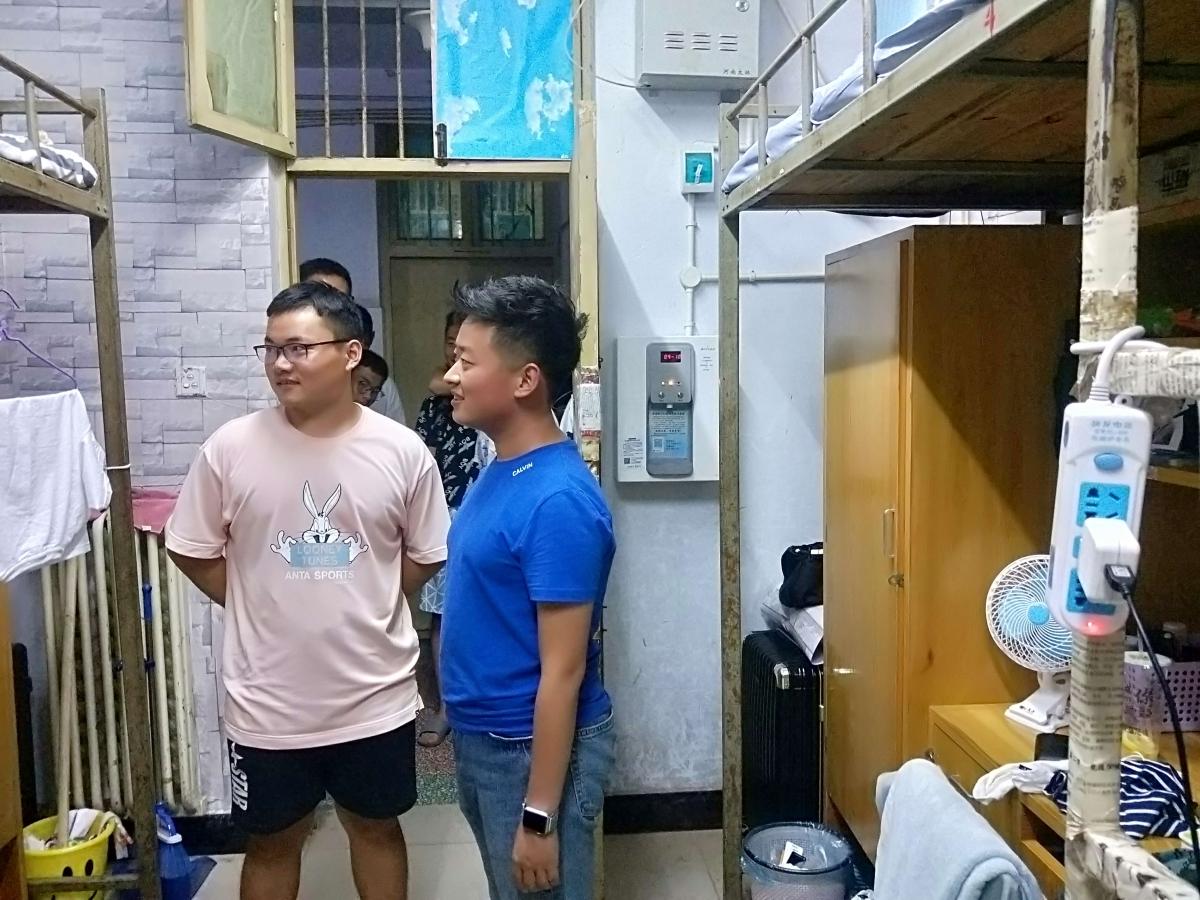 2019年9月11日晚上,我院19级辅导员谢佩霖老师以及体育学院学生会主席罗一豪与各班临时班委对19级寝室进行宿舍隐患,安全卫生、寝室风貌等方面进行走访检查。