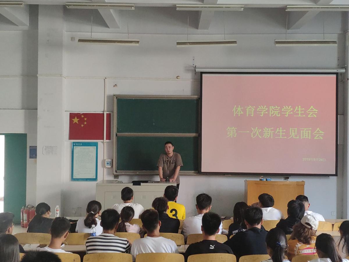 2019年9月24日中午十一点四十,我院在A合五召开了学生会第一次新生见面会,本次会议参加人员有体育学院团总支副书记杨乐老师以及学生会主要学生干部以及全体学生会新进干事。