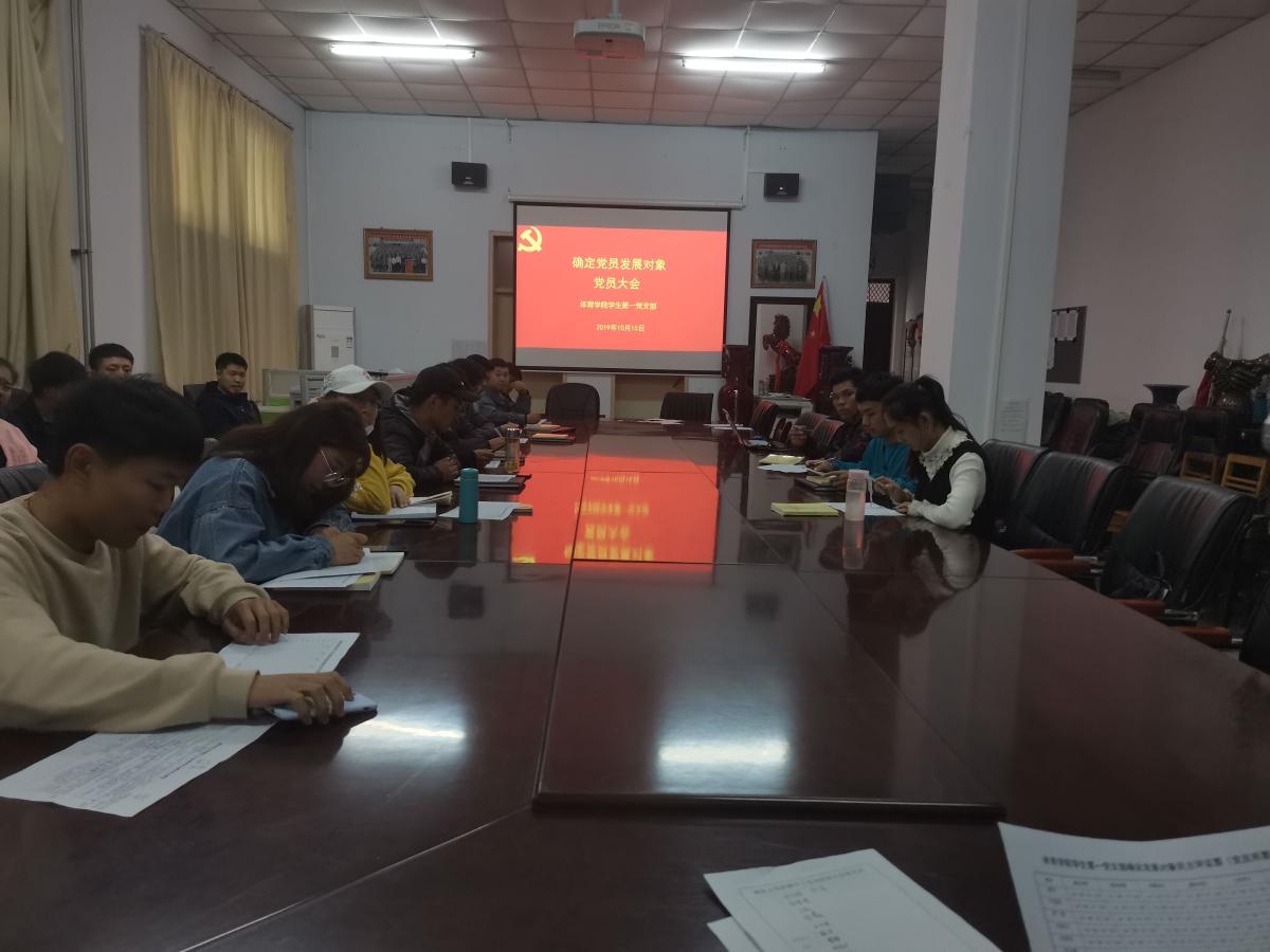 2019年10月15日中午,体育学院学生第一党支部在体育学院办公室召开党员大会确定党员发展对象。会议由学生第一党支部副书记黄永胜主持,学生第一党支部全体学生党员参加了本次会议。