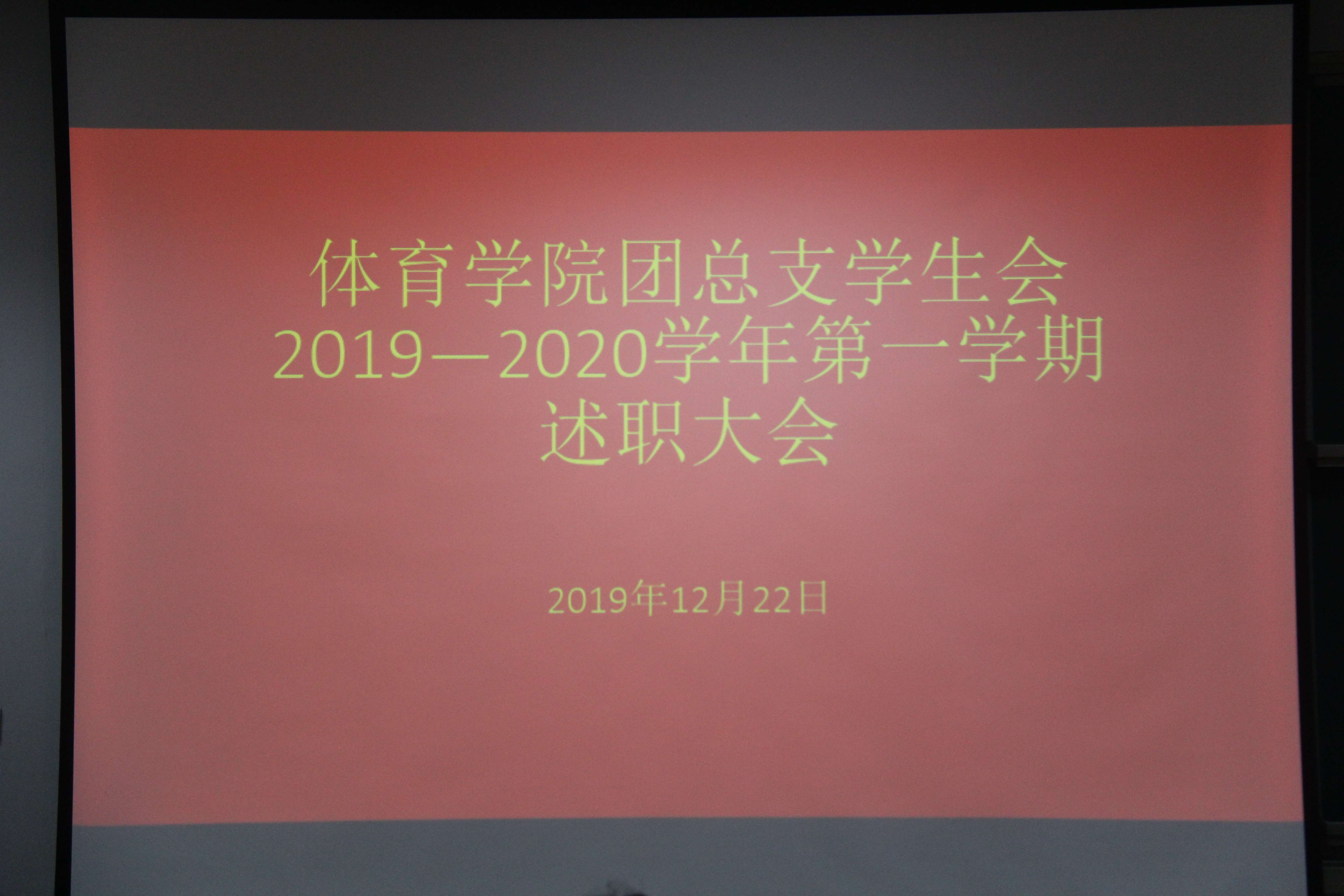 2019年12月22日下午三点体育学院团总支学生会在文综楼109教室进行学期述职。参加本次会议的有学生会主席团成员,各部门部长,及全体学生会干事。会议由团总支学生会办公室副主任徐希伟主持。