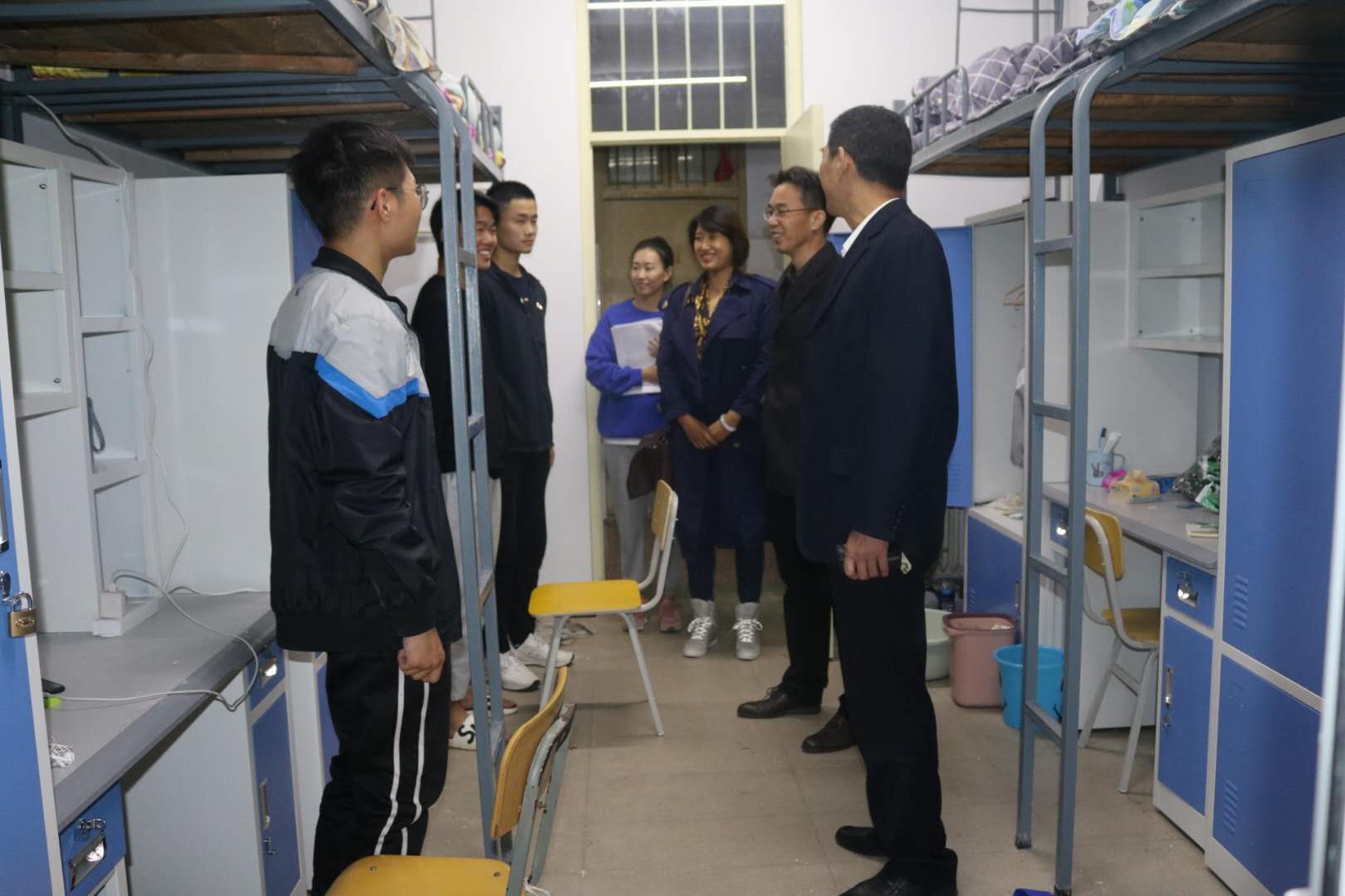 10月10日晚,我院2020级迎新工作顺利完成,为做好新生入校后疫情防控工作,了解新生思想动态及生活情况,强化学生宿舍管理,营造文明、安全、健康有序的科学防疫环境。体育学院院长李慧林、党委副书记朱文杰,团委书记刘振坤、20级辅导员杨晨等领导老师,在学生干部的陪同下,前往宿舍走访看望2020级新生。