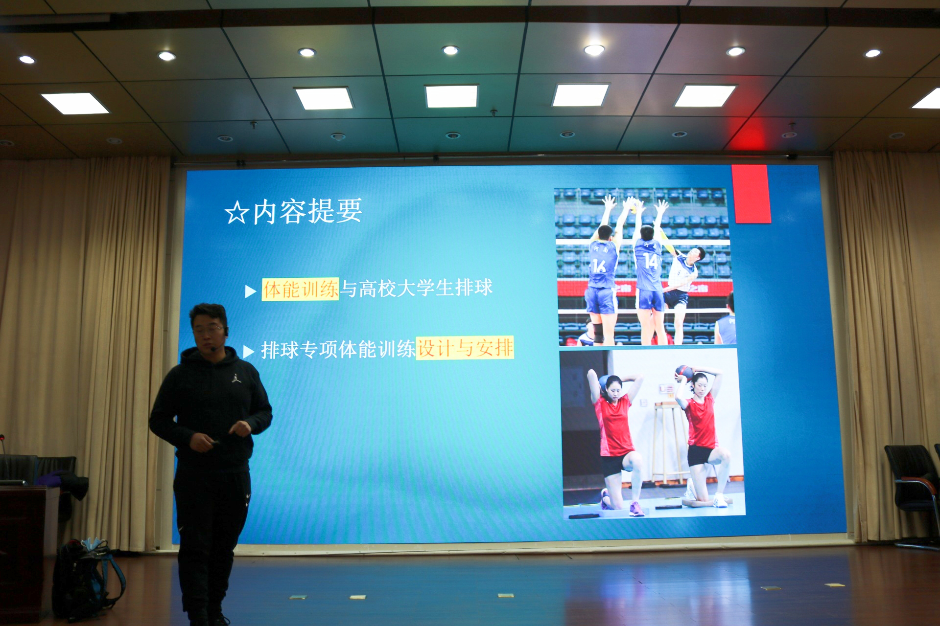 在接下来的两天时间里,原中国男排主教练,现河南省体育局球类运动管理中心党委书记谢国臣;河南省排球协会裁判委员会主任、国家排协级裁判李鹏;北京体育大学体育教育训练学(体能方向)博士、我校体育学院户外运动教研室主任杜聪三位专家分别开展排球训练理论与方法、排球竞赛规则与裁判法、大学生排球运动员体能训练理论与实践三个模块课程