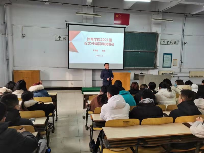 1月5日上午,体育学院2021届毕业论文设计《开题报告》说明会在A合九召开,我院副院长董世彪,党政办公室副主任邓永川,2017级体育教育、社会体育指导与管理专业全体学生参加。
