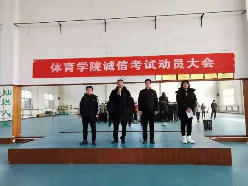 为严肃考风考纪,让同学们了解诚信考试的意义和重要性,1月5日下午,我院在体操馆举行了体育学院诚信考试动员大会,院长李慧林、党委副书记朱文杰、副院长董世彪、团委书记刘振坤、辅导员杨晨,及20级全体成员参加了此次大会。