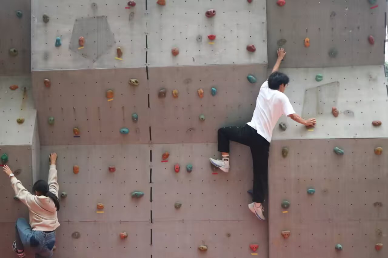 本次运动会采用全新比赛项目,增加了运转乾坤、竞速板鞋、车轮滚滚、撕名牌等项目,同时进行的攀岩比赛,也由往年的速度攀岩改为抱石攀岩,降低难度增加运动体验。同学们参与比赛齐心协力,团结协作,在竞技比赛的同时充分感受运动的乐趣。