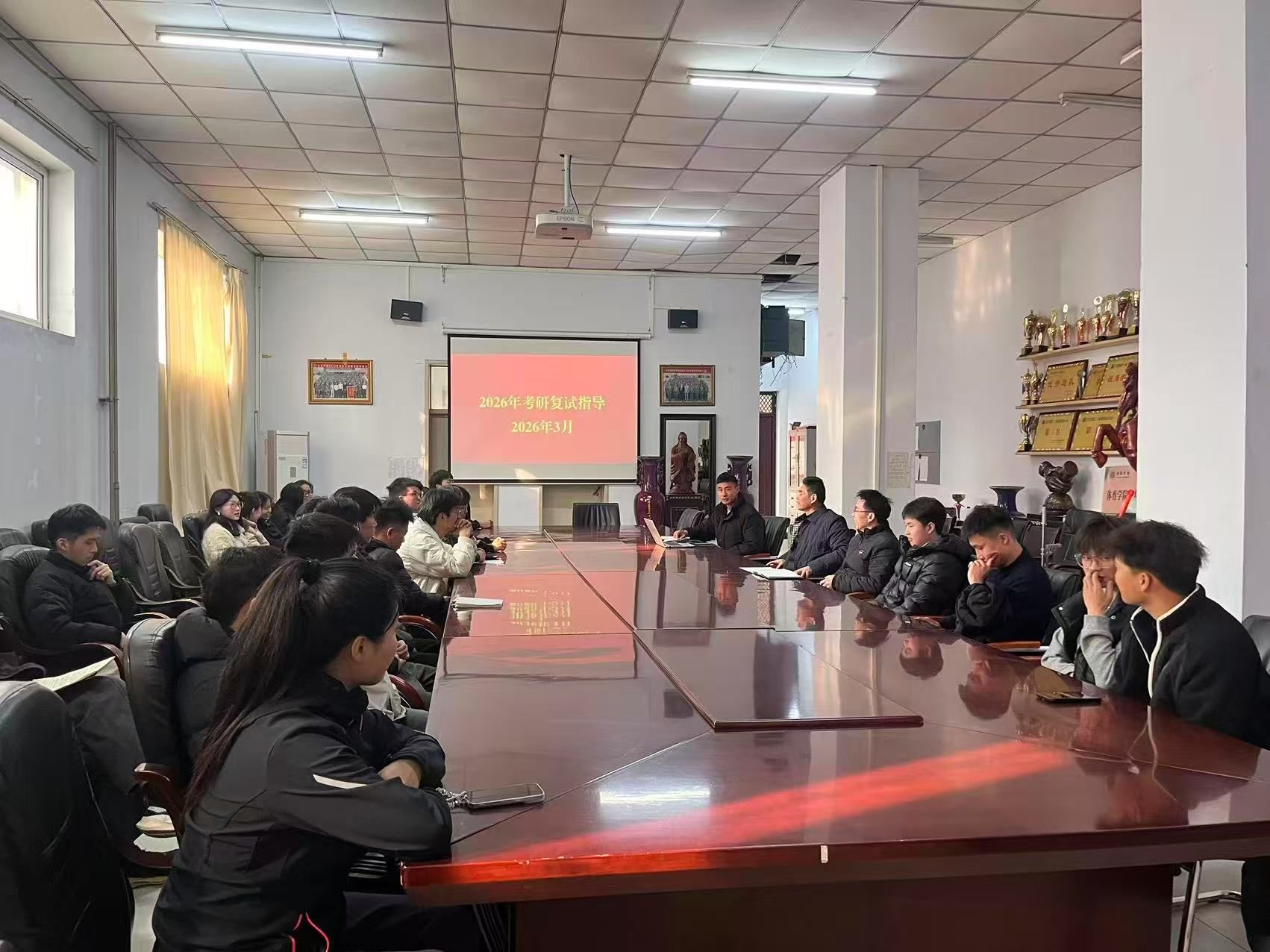 为提升考研学子复试竞争力,体育学院于2026年3月密集开展复试指导活动,体育学院院长李慧林、党委副书记朱文杰、教师以及辅导员出席指导会,向初试过线学生表达祝贺,强调复试是考查专业素养、综合能力的关键环节,鼓励学生保持自信、注重细节。通过专题会议、经验分享、以及答疑等形式,有效缓解备考焦虑,助力学子科学备战。