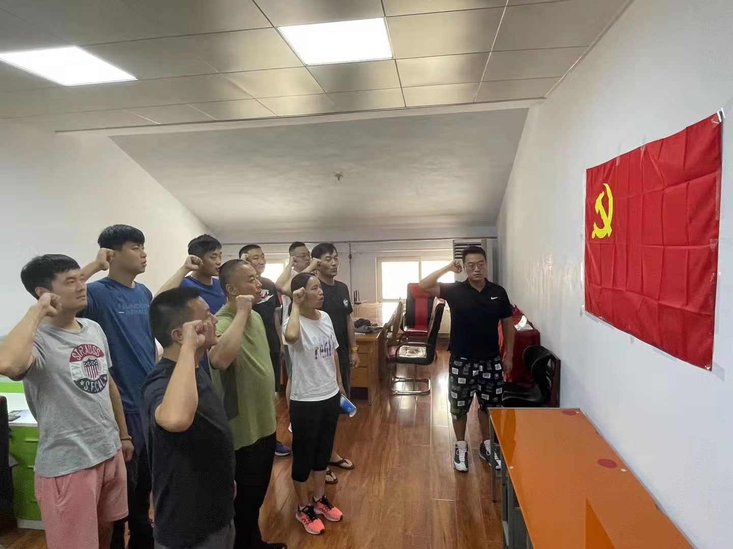 6月28日,为庆祝建党百年,重温入党初心,体育学院教工二支部全体党员在羽飞田径场122办公室举行了“迎建党百岁华诞,忆入党初心不改”的主题党日工作。