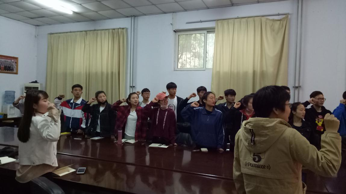 2018年4月12日晚,我院辅导员老师张亚辉以"团章的学习,团的重要精神”为主题向同学们讲述了"团徽,团旗,团歌,团员证,入团誓词”的来历和意义,使同学们进一步了解和掌握了共青团的基础知识及团的光荣历史,尤其是全体同学齐声朗读了入团誓词环节,再一次振奋了同学们的精神,激发了爱国,爱党情怀。