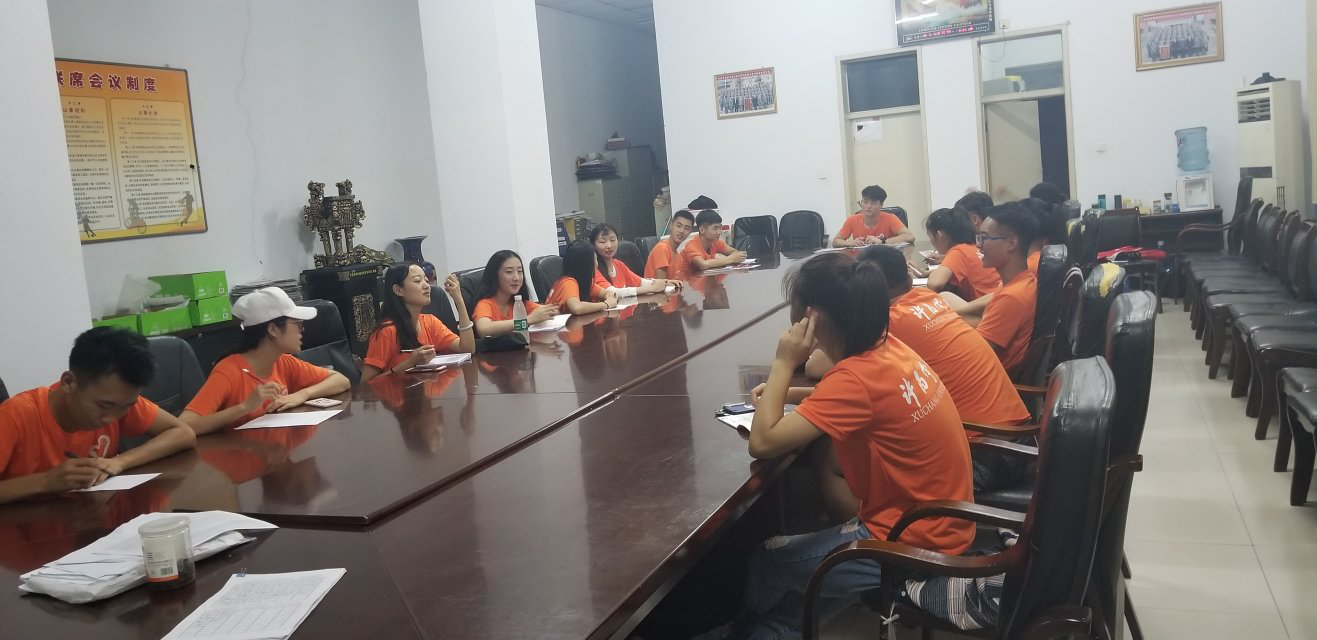 2018年7月4日,由于下雨天,科技广场的活动无法正常开展,实践队的队长带领同学们在羽飞办公室召开总结报告会议。该会议主要以集思广益,共同规划和完善实践活动的内容为目的,进一步打造惠民利民的志愿活动。
