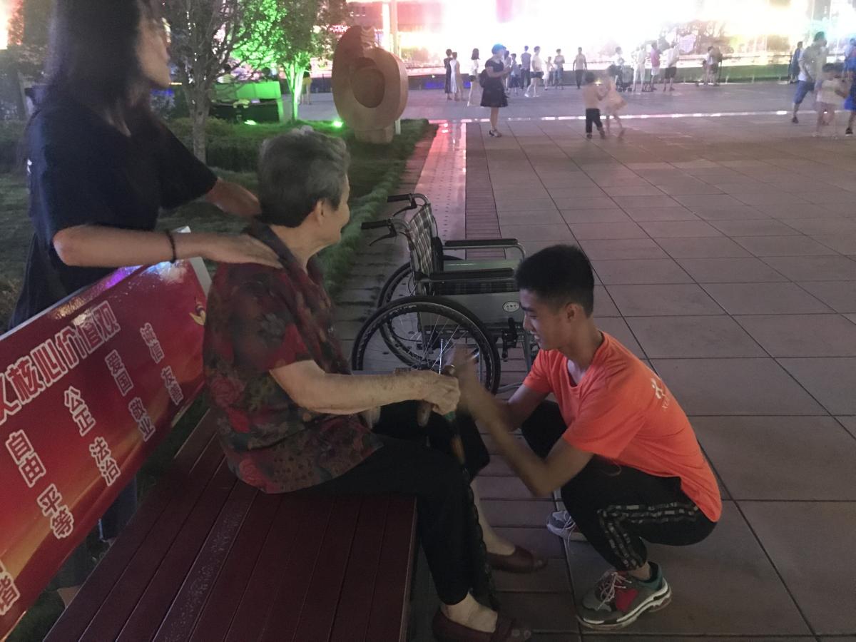 本次的实践活动主要是以践行总结报告会提出的要求为主,旨在扩大服务人群范围,将关爱传递给更多的人。首先,实践队的队员分组召集许昌市科技广场的小朋友,将小朋友们引领到宽阔的场地来互动、做游戏。在小朋友们的欢声笑语之中,天色渐渐暗下来,晚出散步的老人也逐渐多了起来,实践队派出组员进行关爱老人的志愿服务。为老人捶捶背,捏捏肩膀,聊聊家常…只为表达我们的一点心意,让老人感受到温馨与快乐。老人露出那慈祥的笑容就是给予我们最大的回馈。