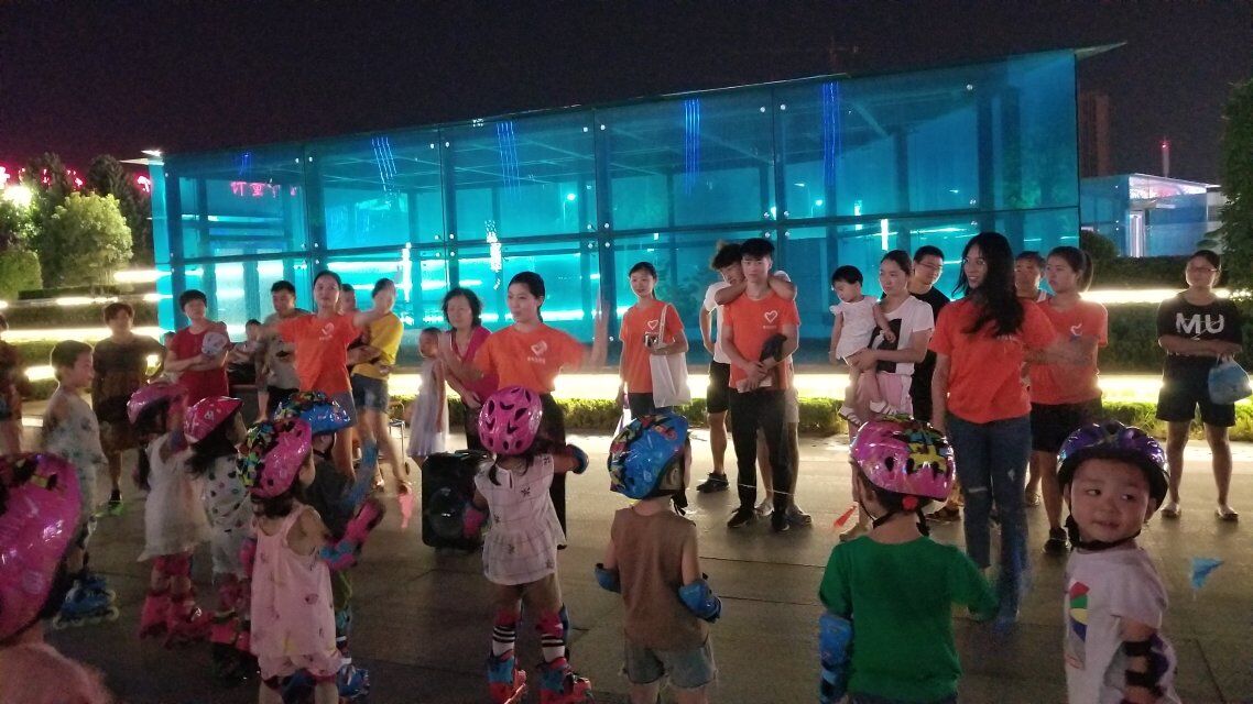 继近一周的实践活动的开展,实践队每天的活动以儿童的轮滑热身练习为开场,之后以小组形式游走于科技广场内,各自开展相关活动,为广场上的人民群众送去温暖,奉献爱心,关注老人与儿童的生活状态。