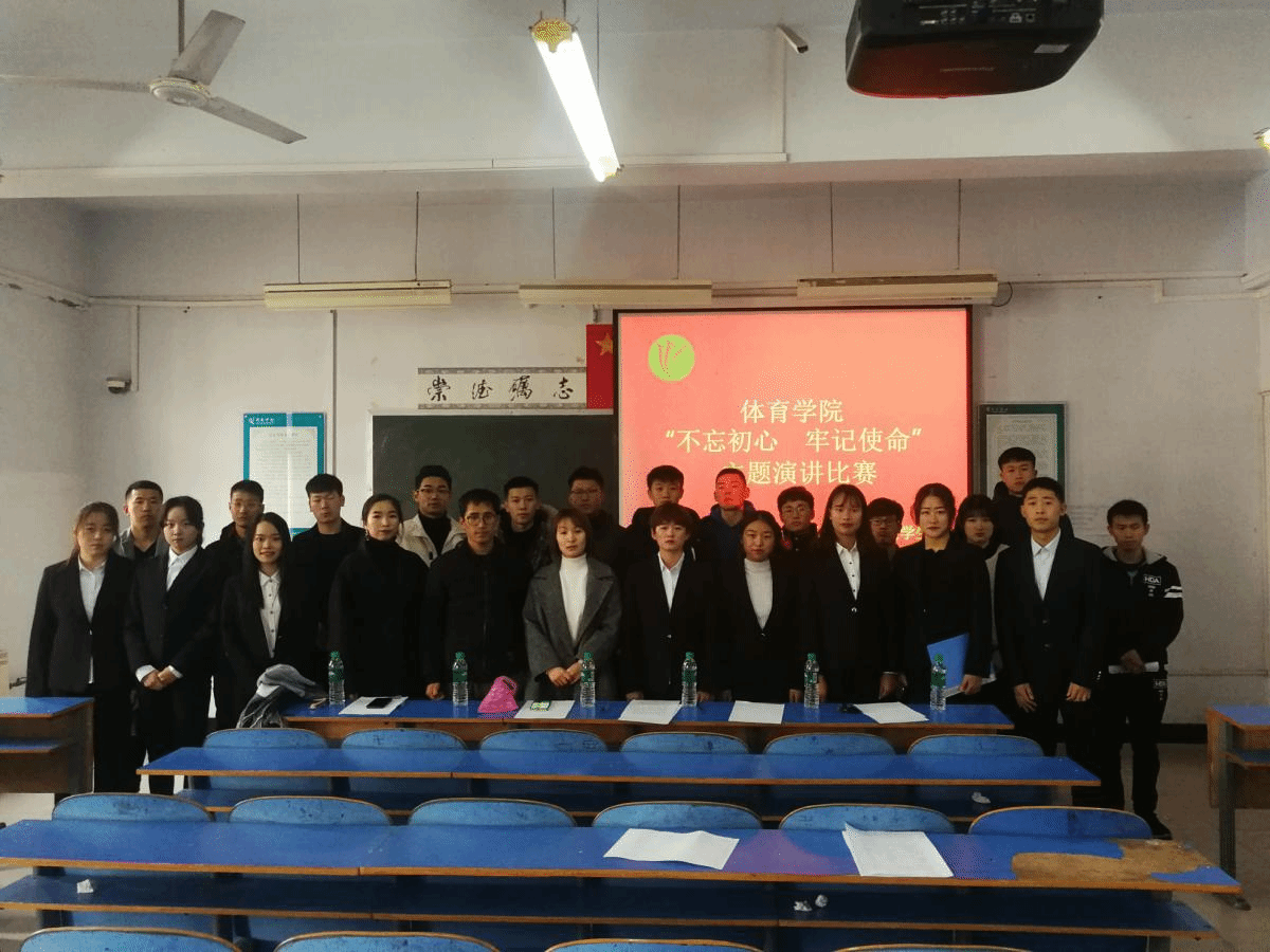 2018年12月7日,“不忘初心、牢记使命”主题演讲比赛在C-502举行。体育学院团总支负责人邱靖逸老师、2018级辅导员张亚辉老师、体育学院团总支学生会主席团成员出席活动并担任评委。