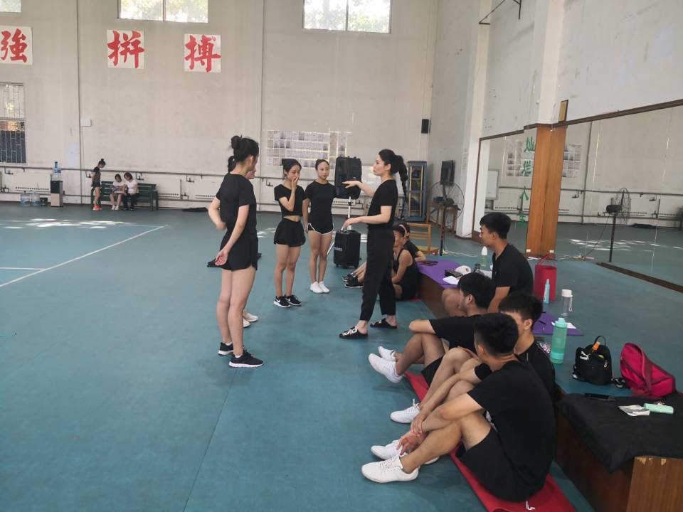 7月3日上午9点,赵晨子老师和单珊老师为啦啦操队指导训练动作,紧张而又充实的一天在音乐中开始了。
