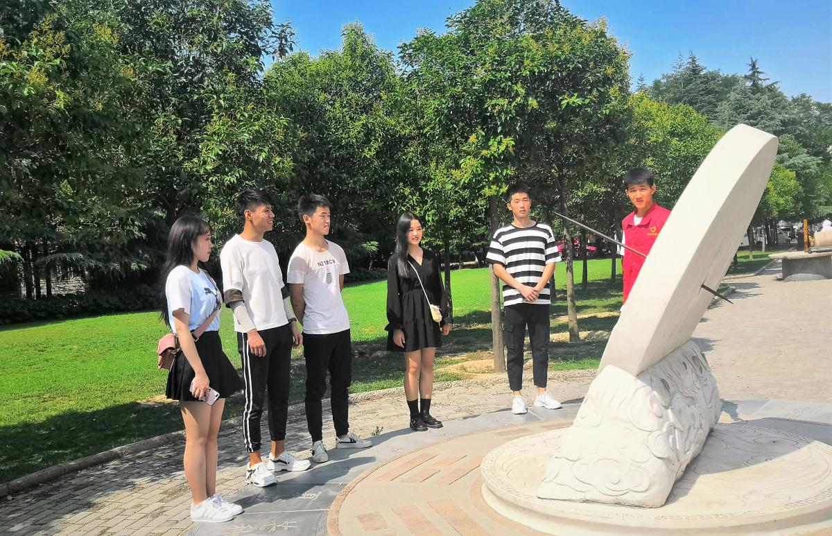 上午十点,由队长韩子零带领实践队成员们参观农耕博物馆,探寻磨盘、日晷等一些旧址。队长韩子零作为导游带队员参观并详细介绍了日晷的产生、用处以及历史。队长给我们讲农耕历史文化,使同学们对旧社会生活抱有憧憬以及感慨新生活的繁荣。旧时农耕社会是引人向往的,而今朝繁荣风貌是农耕社会想不到的,一切自动化代替手工产业真的实现了,不禁让人感慨现代发展之迅速。