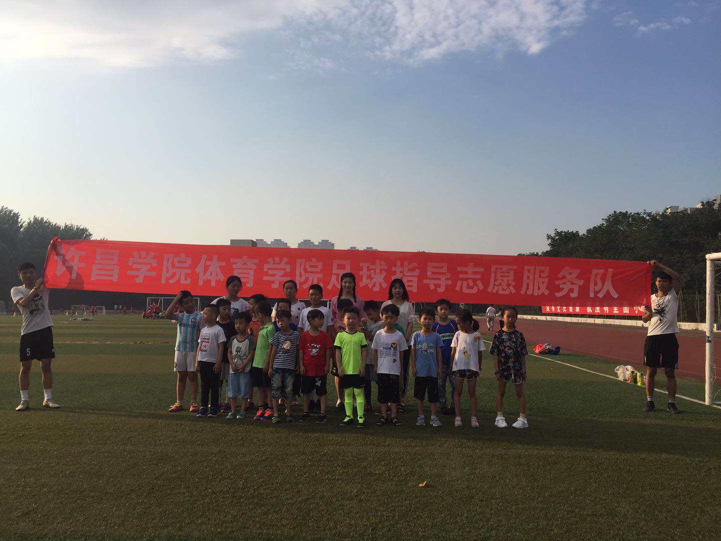 为了强化大学生思想道德素质和志愿服务精神,争做优秀志愿者,增强大学生奉献服务精神,许昌学院体育学院开展了“暖莲城”志愿服务。7月6日,天气晴朗,体育学院足球指导志愿服务队和孩子们一起,迎来了崭新的一天。