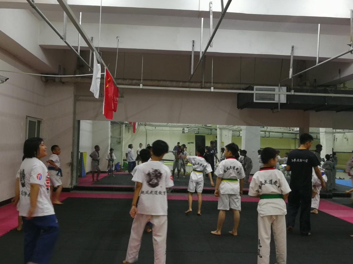 7月7日上午7点,又是崭新的一天,社会实践队员在队长李赛的带领下来到许昌学院飓风武术馆继续进行跆拳道指导教学实践。