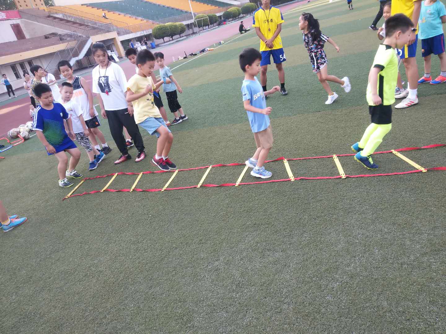 上午社会实践队成员举行了集体会议,总结一下近期的工作情况,对自身工作中的优点与缺点进行回顾与分析,吸取经验教训以便做好今后的工作。会议上每个人都进行了发言,总结了自己工作上的不足,并对自己不足的地方加以分析和批评,同时也认真聆听了他人的发言,这次会议给在场所有人都上了一堂深刻的总结课。下午依然在操场上进行训练。操场上每个孩子都激情四射,带着自己的热情去进行足球游戏。教练把孩子们分成了两队,两组成员进行比试,一场比赛下来加强了各队成员之间的友谊,也让孩子们学会了合作精神,形成了团队意识。