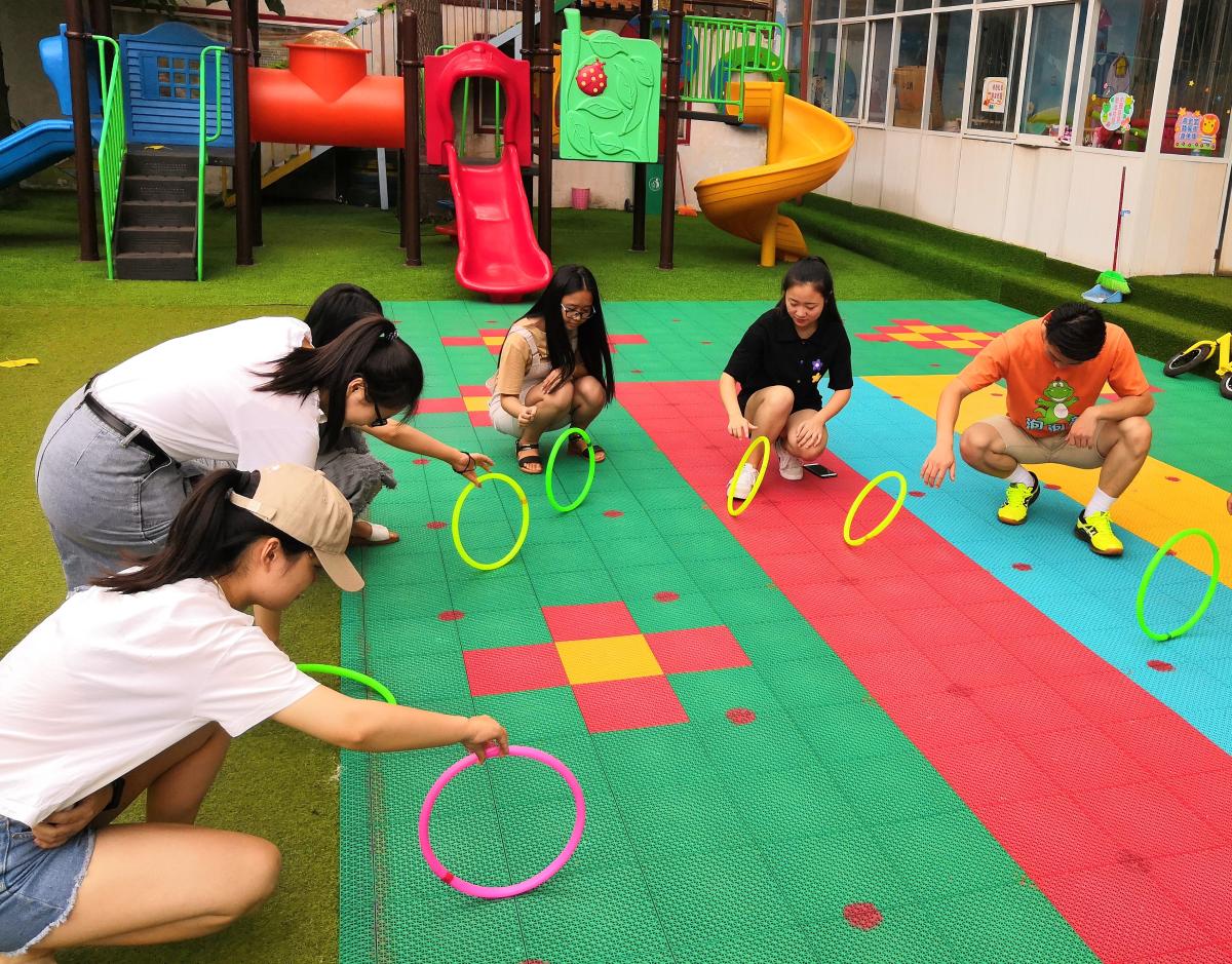 7月9日,体育学院幼儿体适能指导志愿服务队出发前往文峰路幼儿园继续进行为期15天的社会实践活动。今天的主要任务是带小朋友们做游戏和复习律动操。
