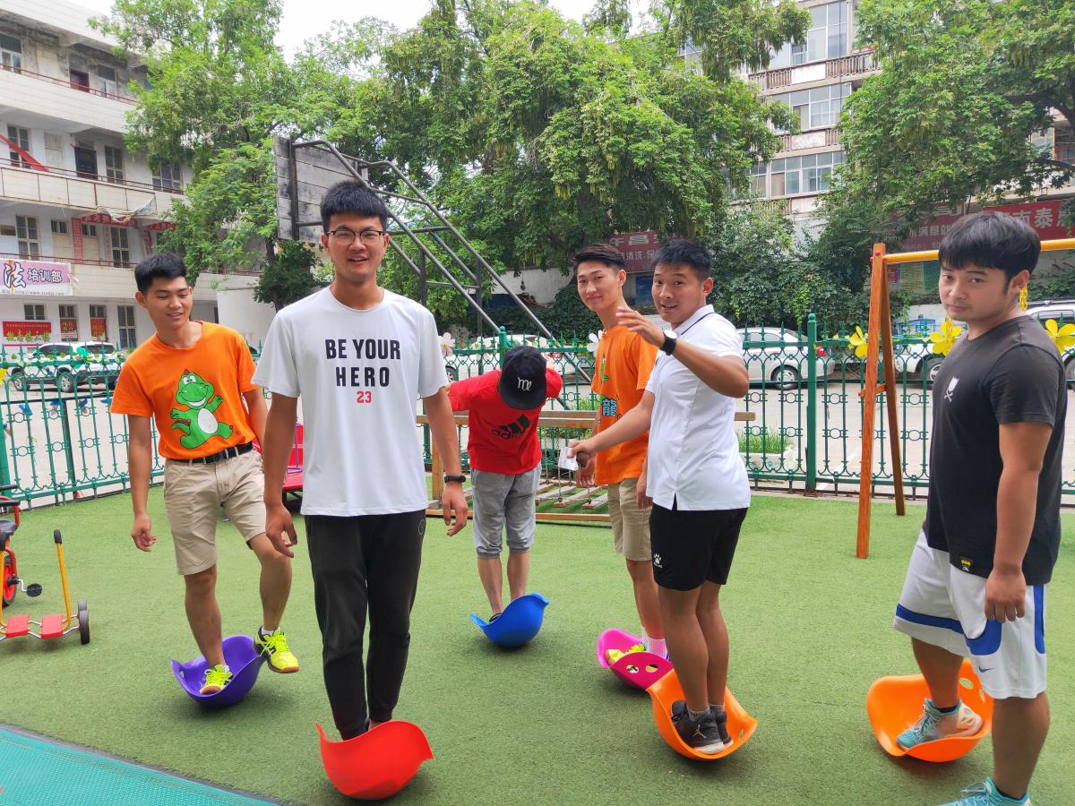 7月10日,体育学院幼儿体适能指导志愿服务队像以往一样集合去文峰路幼儿园开展实践。今天的主要任务是带领小朋友做游戏。