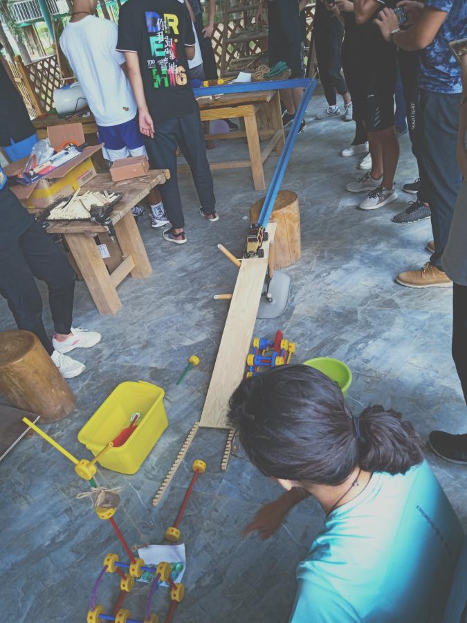 今天我们主要进行了户外营地特定活动的带领特点和技巧的学习,老师首先带我们体验了考验创造力和动手力活动-戈徳堡机。通过我们小队间队员的协作,哈顿星球工作人员的指导,我们完成了独一无二的机关。并从中学会了项目的布置和注意事项。