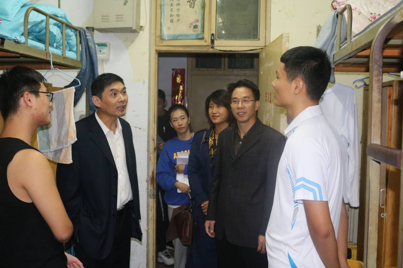 10月10日晚,我院2020级迎新工作顺利完成,为做好新生入校后疫情防控工作,了解新生思想动态及生活情况,强化学生宿舍管理,营造文明、安全、健康有序的科学防疫环境。体育学院院长李慧林、党委副书记朱文杰,团委书记刘振坤、20级辅导员杨晨等领导老师,在学生干部的陪同下,前往宿舍走访看望2020级新生。