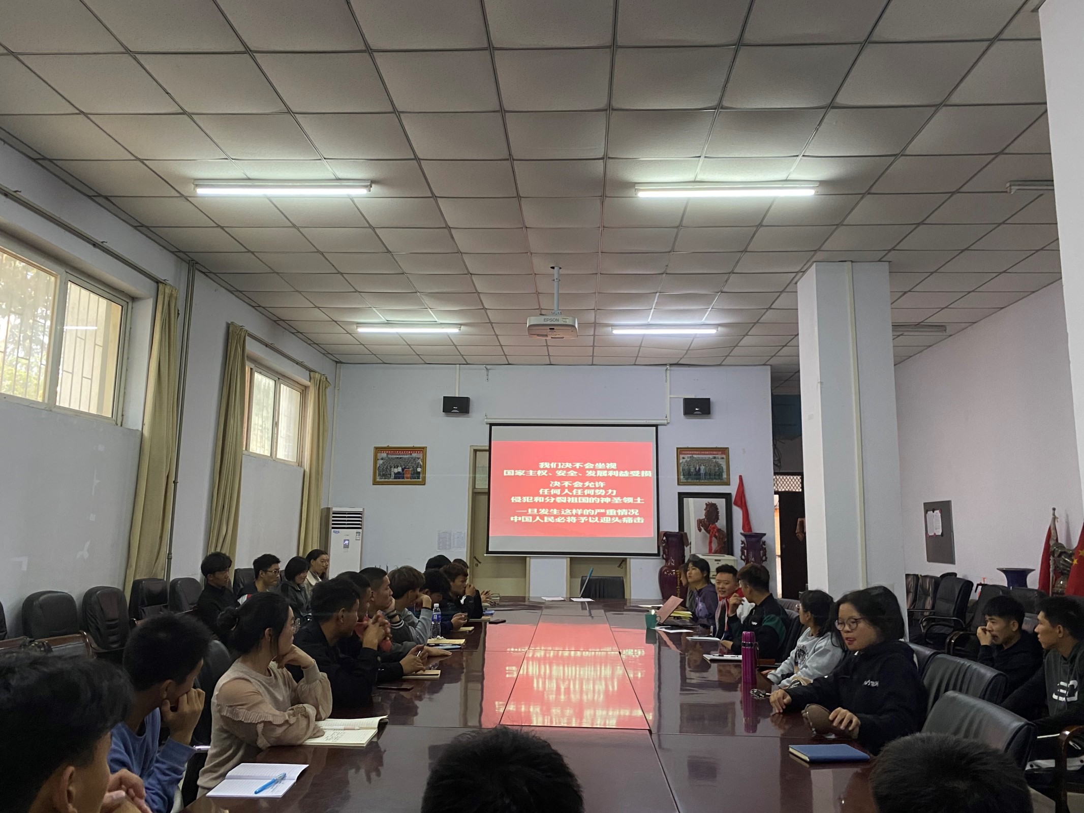 11月12日中午,在体育学院办公室召开第四次分团课培训,这次团课培训是由19级辅导员谢佩霖老师讲解“学习习近平在抗美援朝70周年重要谈话”。这次团课培训分为三个部分进行,一:讲述在抗美援朝战争中重要发生的感人事件;二:抗美援朝的意义,它是保卫国家安全,增强民族自信,提高国际声誉的正义反侵略战争。三:对习总书记在抗美援朝70周年重要精神进行解读。告诫我们青年团员应该铭记历史,不忘使命,争做时代新青年。