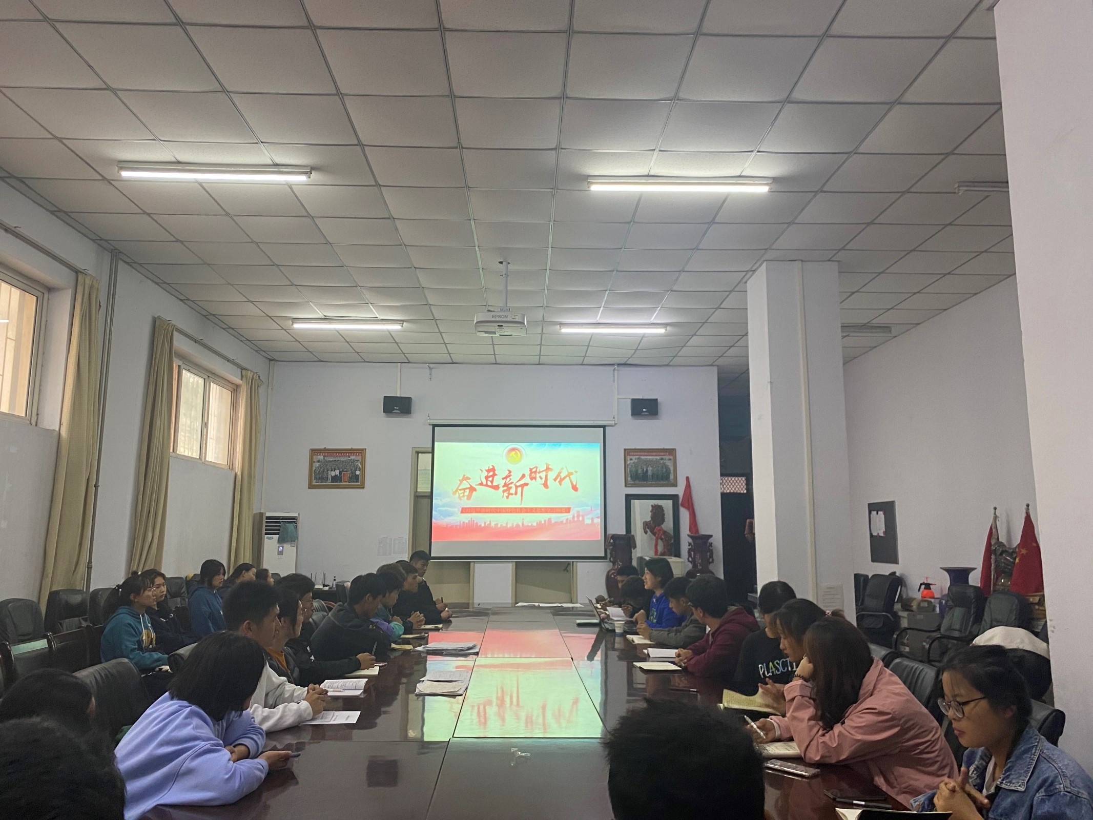 11月13日中午,20级辅导员杨晨老师在体育学院办公室召开第五次团课培训,主题为“团的历史”。杨晨老师根据共青团的历史发展进程开始讲解,加深团员对于团史的了解,明确身为一名团员的使命。共青团是广大青年在实践中学习中国特色社会主义和共产主义的学校,是中国共产党的助手和后备军。新时代团员青年要争做时代先锋,积极向党组织靠拢。