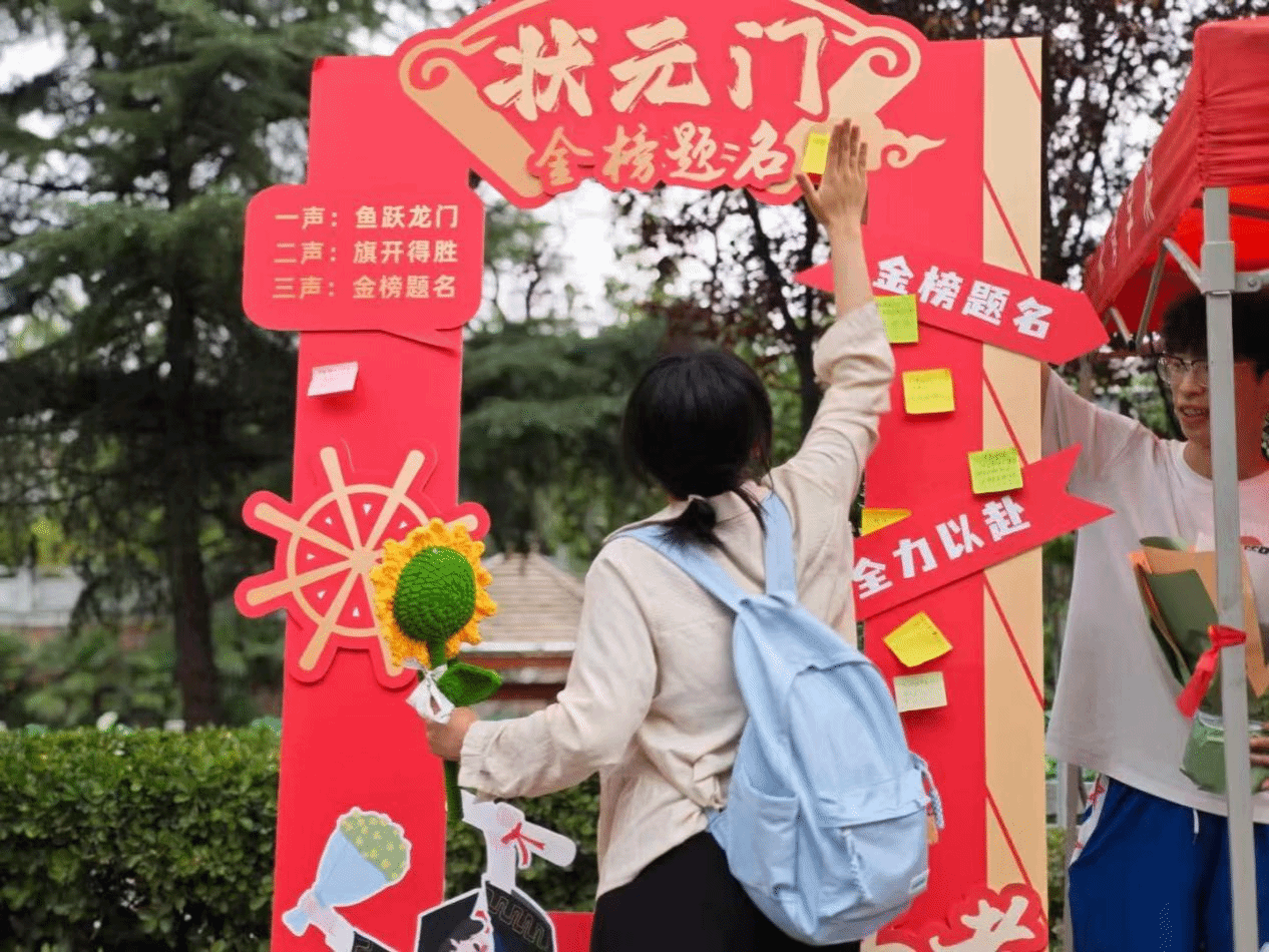在考点外,来自许昌学院体育学院的志愿者们早早搭建起“爱心助考服务站”,免费为考生及家长提供矿泉水、休息座椅及应急文具,并特别设置“心愿便利贴”专区,鼓励考生写下高考心愿。志愿者们还精心准备了往届的录取通知书,为考生送上祝福,激励他们在考场上发挥最佳水平。