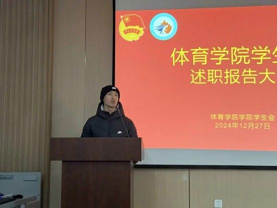 2024年12月27日,体育学院学生会在博雅书院召开2024-2025学年第一学期述职报告会,团委书记刘振坤、学生会主席团成员、各部门负责人及全体学生工作者参会,旨在总结本学期工作、明确未来方向,各部门负责人将依次汇报工作成果与新学期计划。