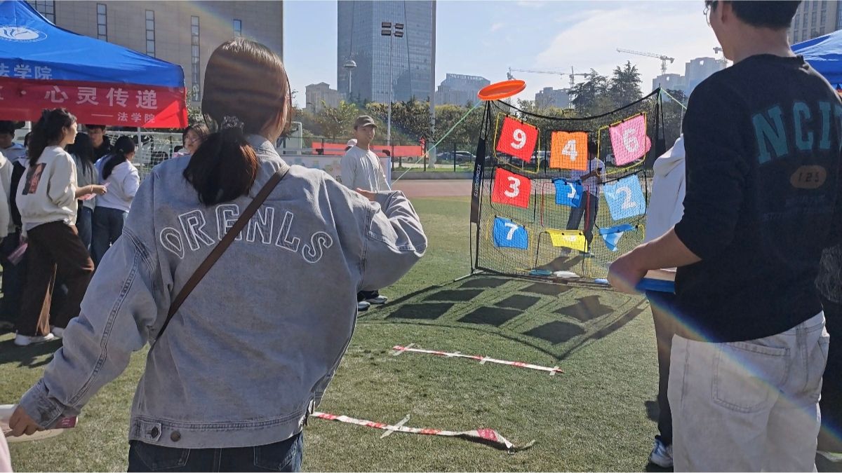在心理游园会板块,心理中心主办的“‘枕’救不开心”活动受到广泛关注,该活动以表情包抱枕为互动载体,组织学生在指定区域开展投掷、击打体验,帮助学生释放学习生活压力,实现从“被动解压”到“主动心理调适”的转变;体育学院则组织了“毅行掷远”项目,通过设置分级投掷挑战,引导学生在运动动作中舒展身心,借助目标达成强化自我效能感,有效促进心理与身体素质的协同提升。