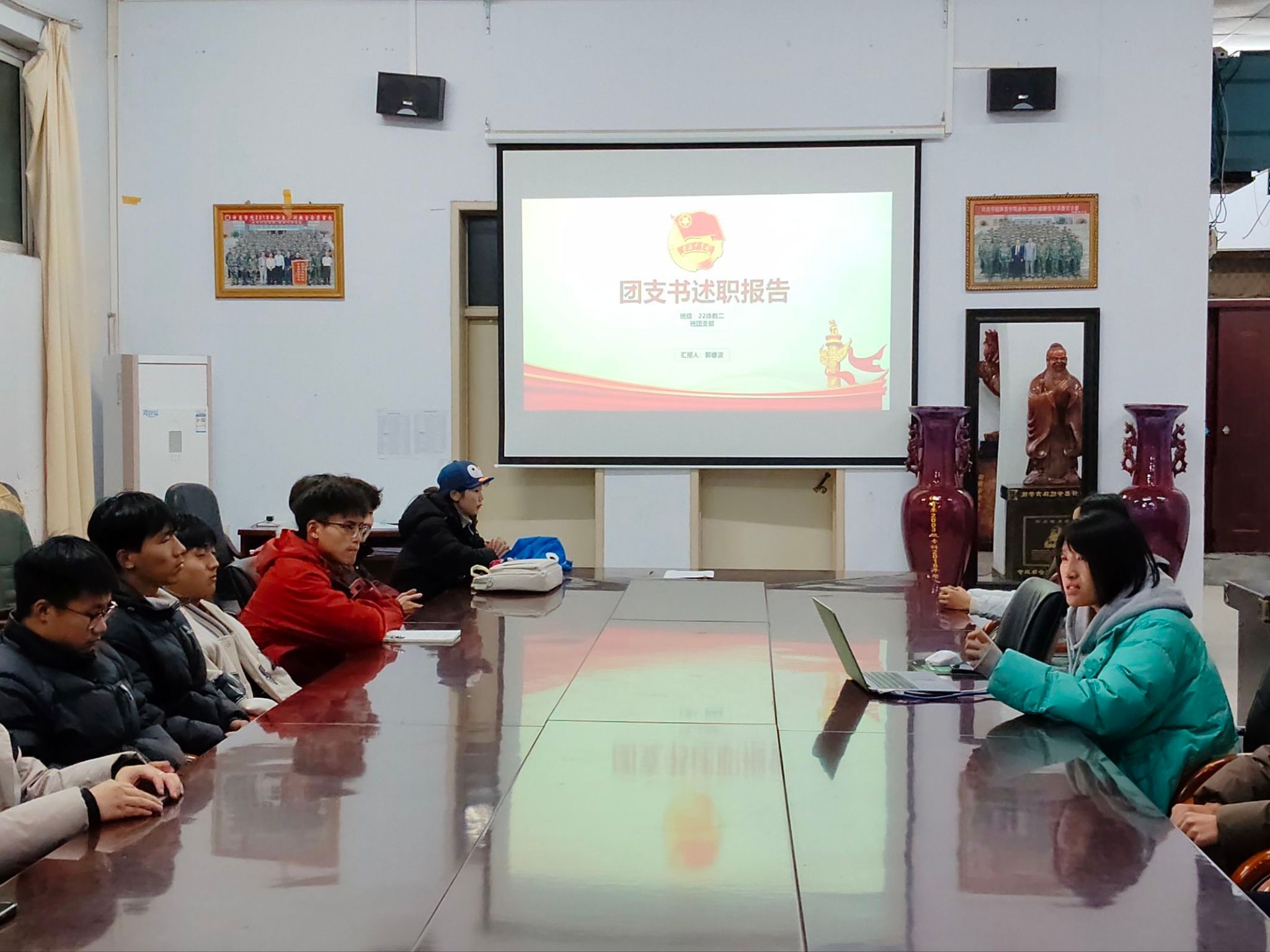本次述职大会以“总结工作、查摆问题、谋划未来”为核心,各年级团支书依次登台汇报工作。汇报过程中,团支书们围绕思想引领、组织建设、团日活动、志愿服务、团员发展等核心工作,结合详实数据与具体案例,系统梳理本学年工作成果;同时,团支书们直面工作短板,针对活动策划不精细、团员参与度不均衡、沟通反馈机制不完善等问题,逐一剖析成因并提出改进思路,展现出求真务实的工作态度。